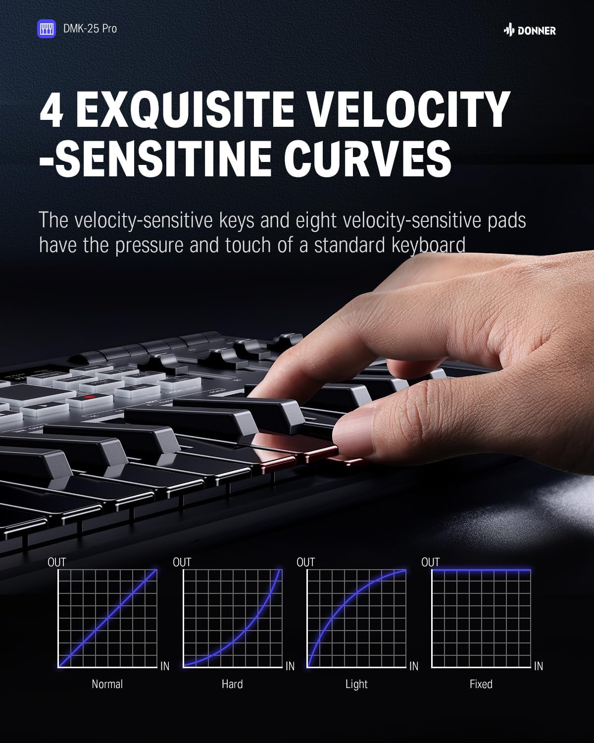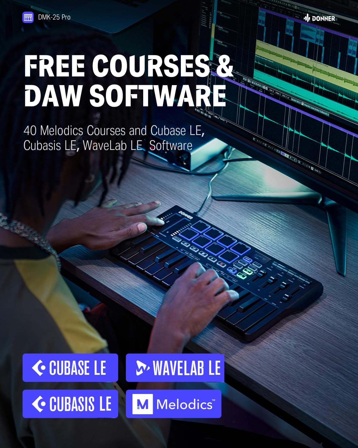 Unleash your melody with the Donner DMK 25 Pro MIDI Keyboard, a hub of musical creativity in the palm of your hands.