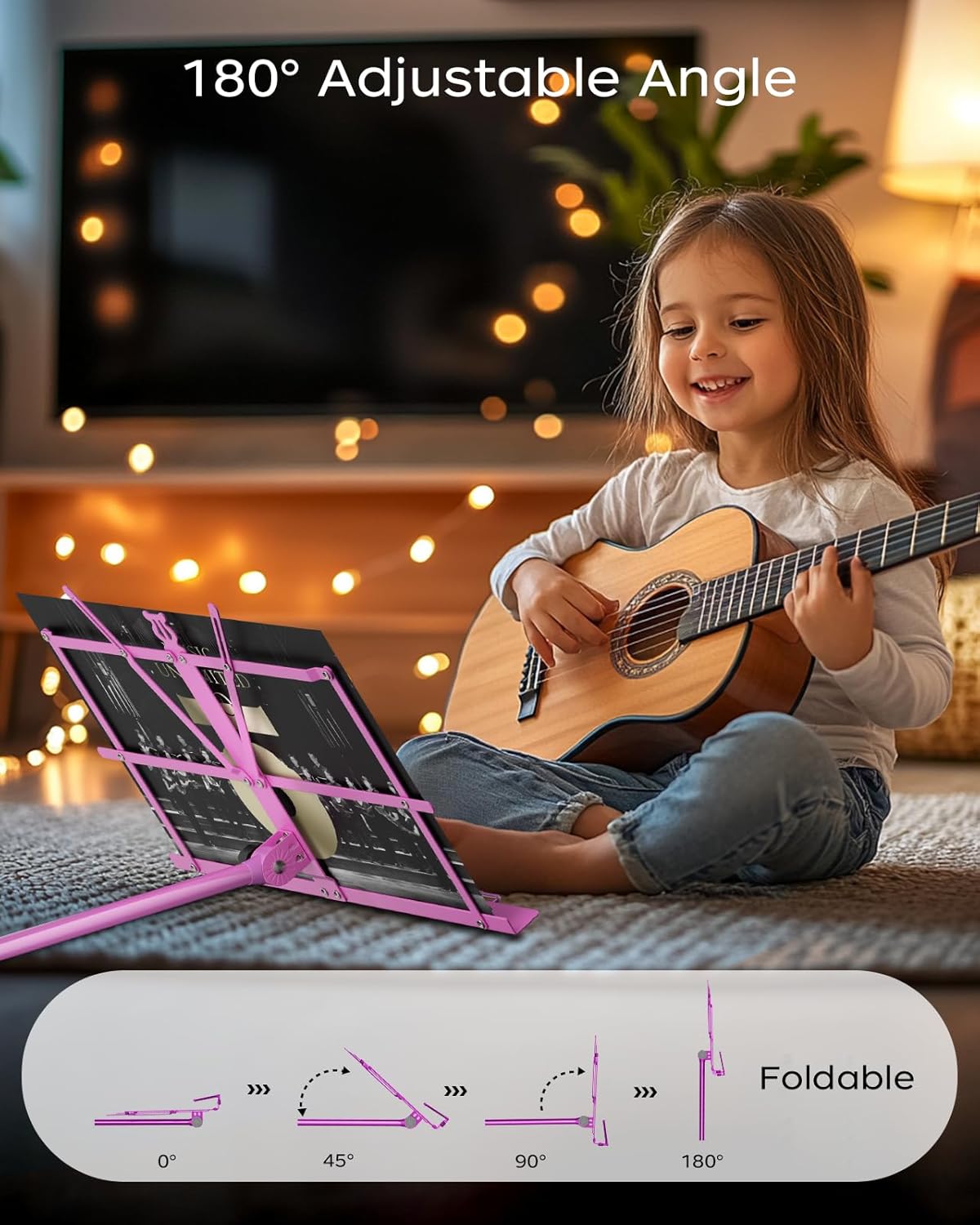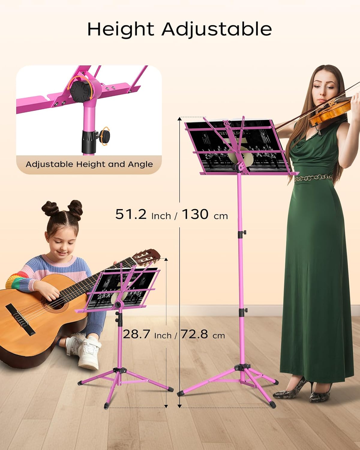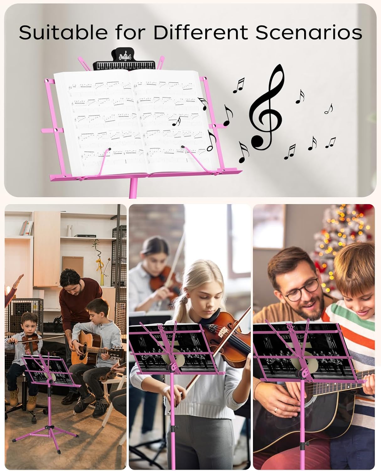 K KASONIC 2-in-1 Transformable Music Stand: Portable & Adjustable (Pink)