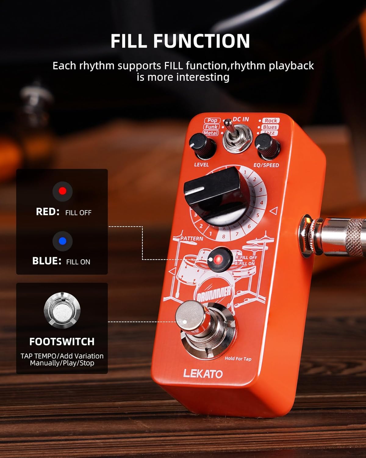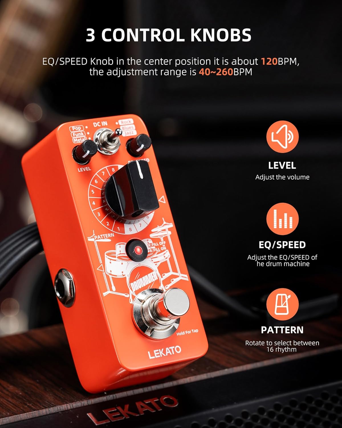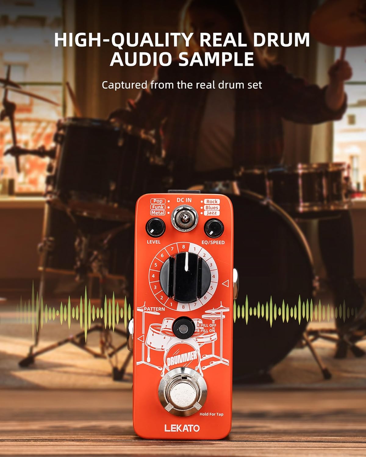Beat the rhythm with LEKATO’s Drummer Guitar Pedal Drum Machine and turn yourself into a one-man band!