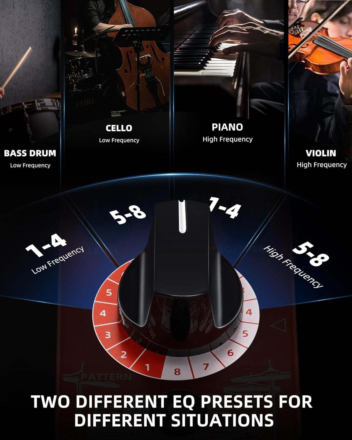 The device also comes with 2 EQ presets for different situations – a low frequency ideal for Bass Drum/Cello, and a high frequency perfect for Piano/Violin. LEKATO’s Drummer Guitar Pedal Drum Machine is a delightful Christmas gift or an ideal present for your children, friends, and loved ones who are guitar enthusiasts.