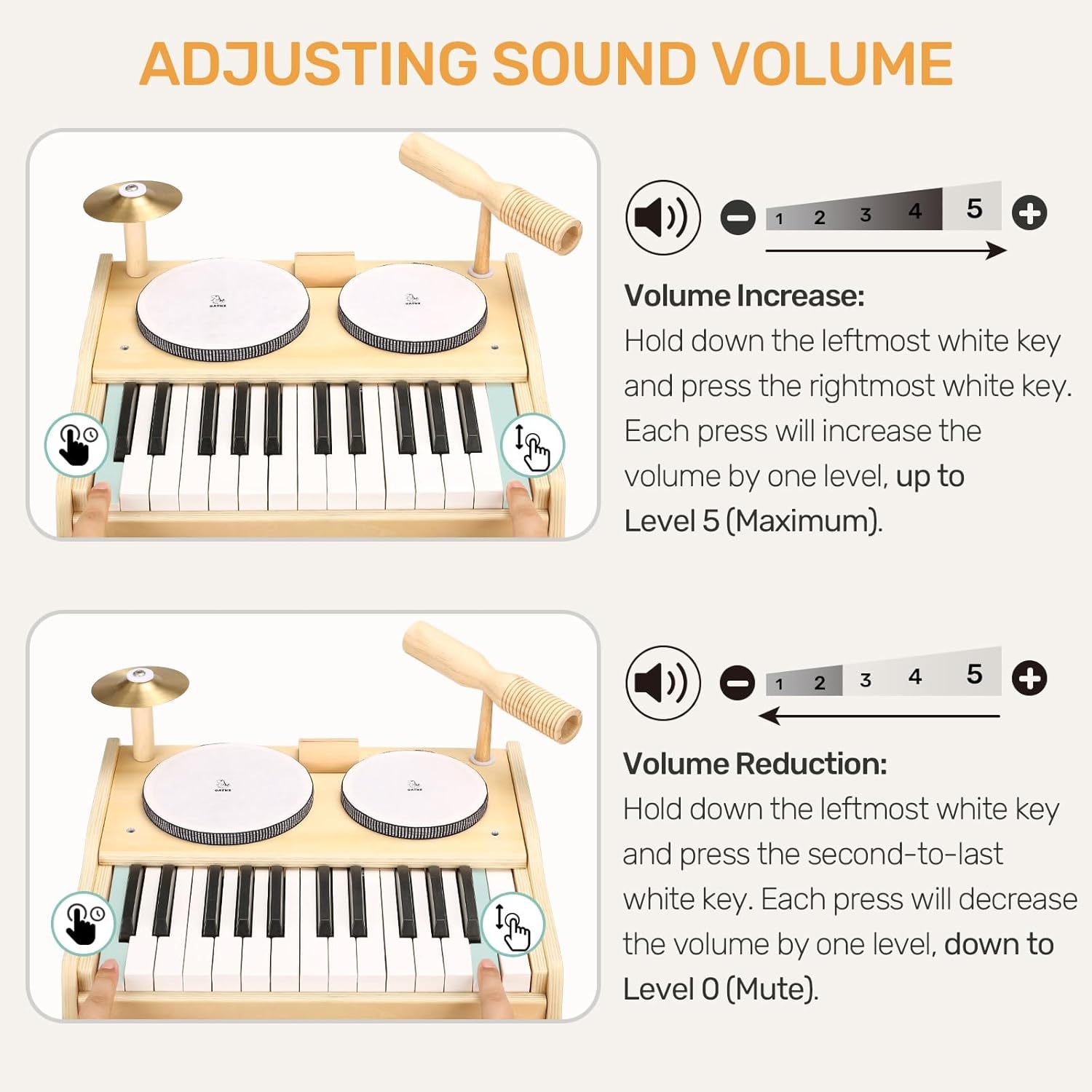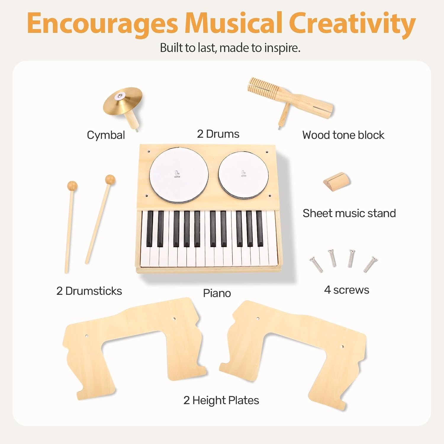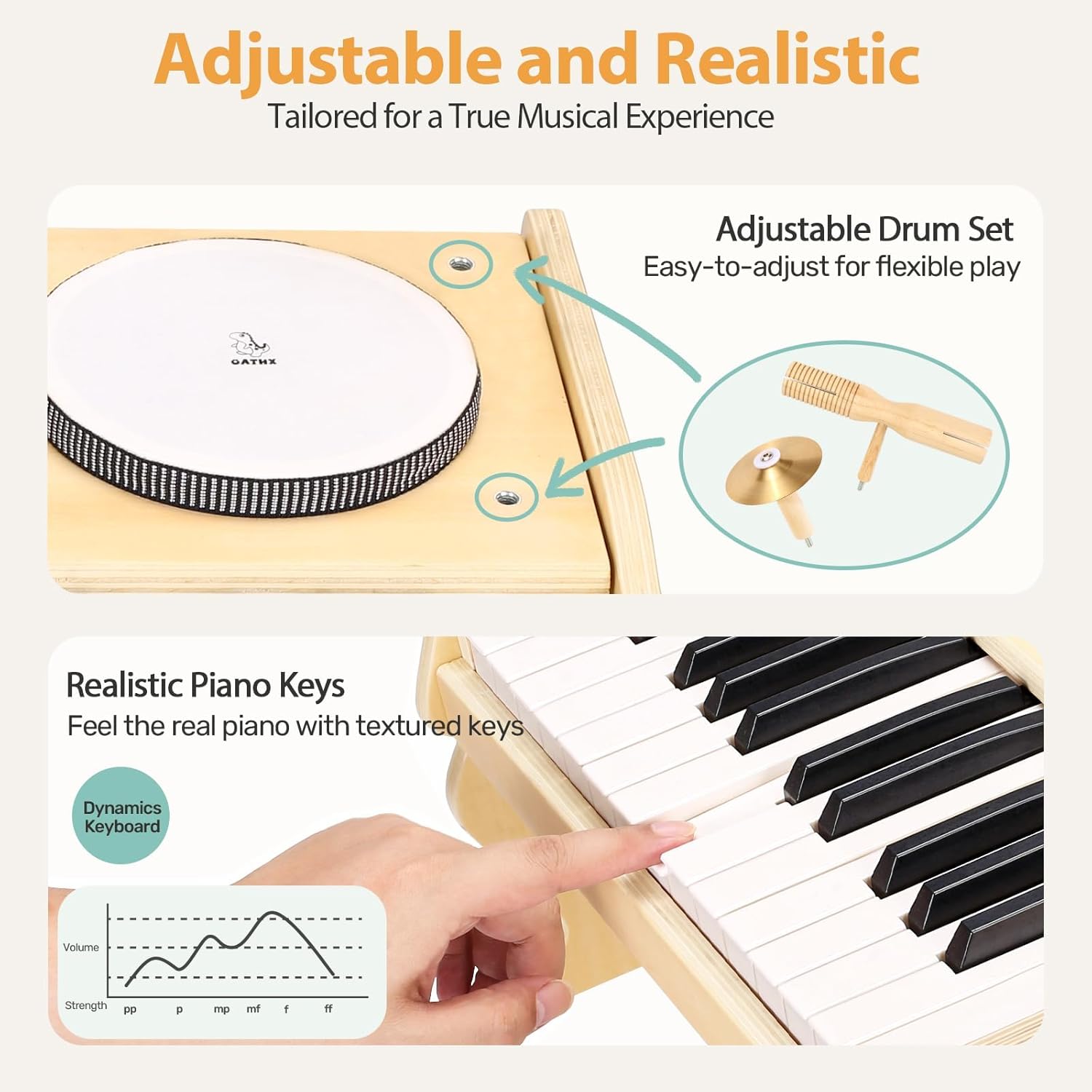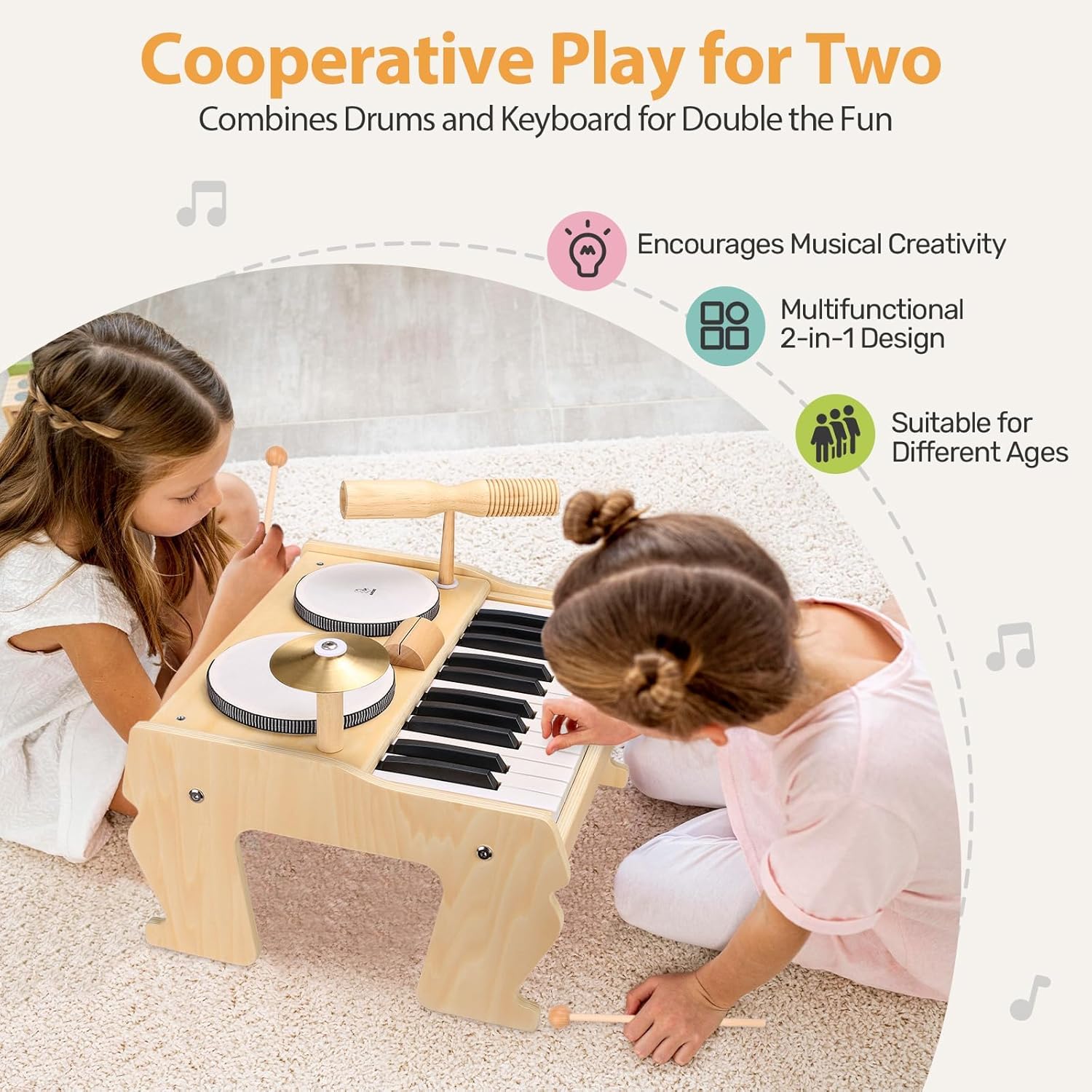 Perfect for Dual Play, this toy encourages social interaction as two kids can play it concurrently – one can hit the drum set while the other plays the piano. This shared musical exploration not only promotes teamwork but also enhances your child’s musical prowess.
