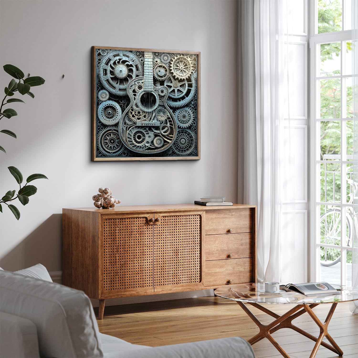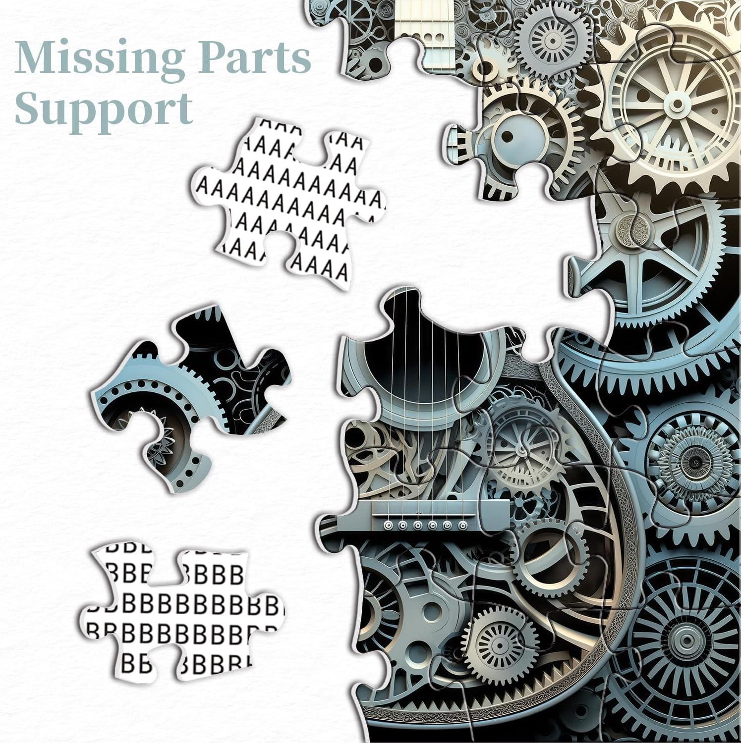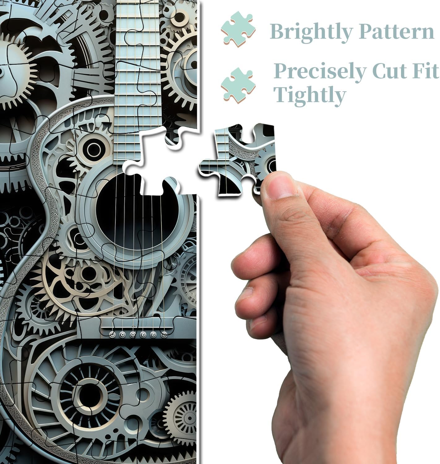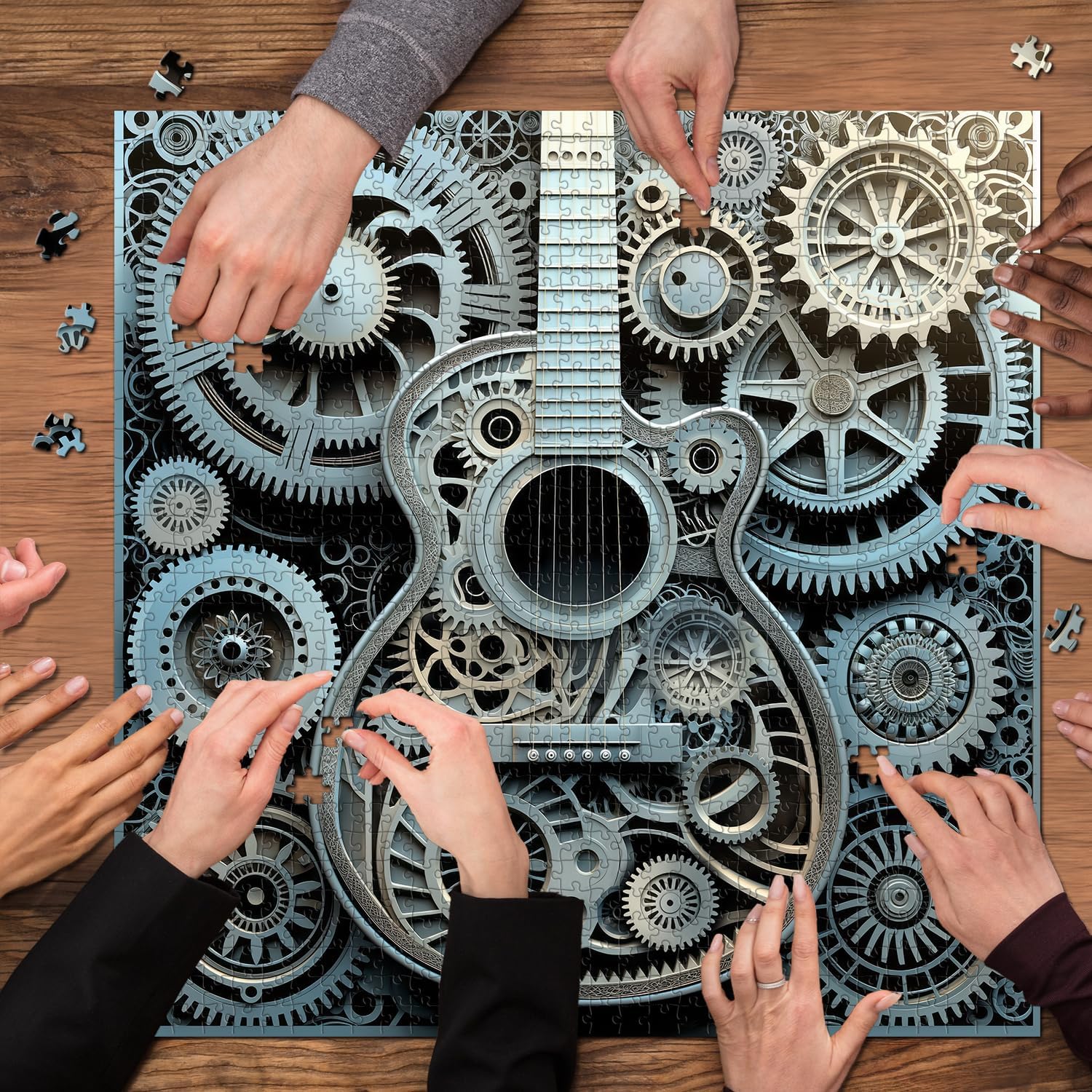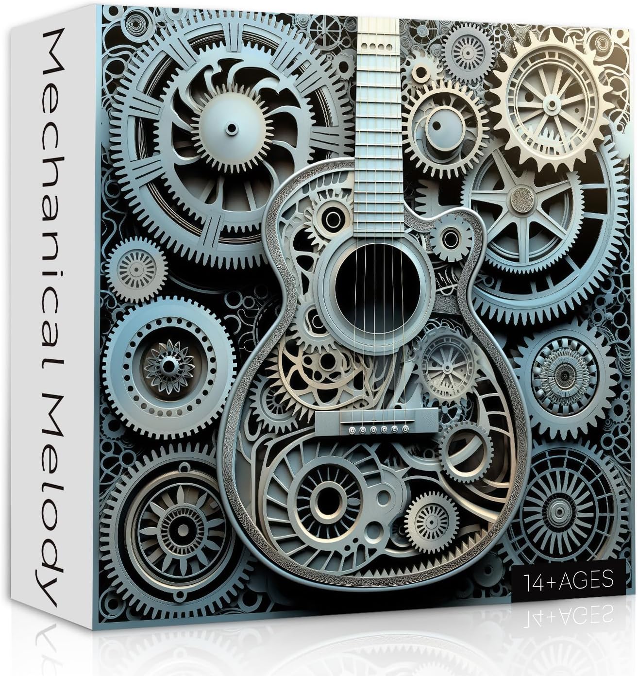 Step into the mesmerizing world of music and machinery with our Vintage Guitar Jigsaw Puzzle. This 1000-piece puzzle is no ordinary game. It’s an awe-inspiring fusion of industry and music, showcasing a guitar made of gears in a unique paper-cut style. The stunning visual impact will captivate you as you dive into the challenge.