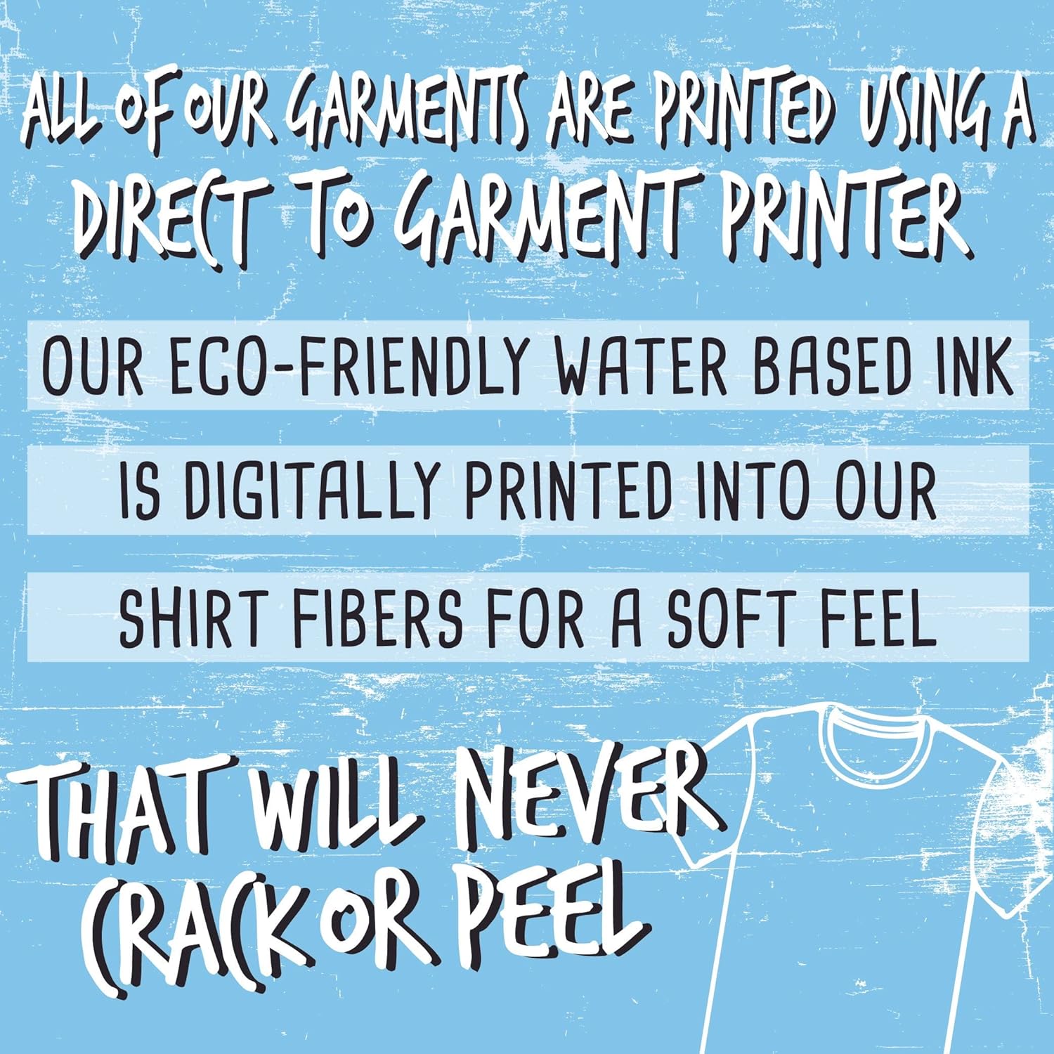 Our unique design is printed using eco-friendly, water-based ink that directly penetrates the shirt fibers. This results in a smooth feel and a lived-in look, with no cracking or peeling like screen printing or iron-on transfers. The rock hand graphic is sure to stay bold and vibrant, wash after wash.