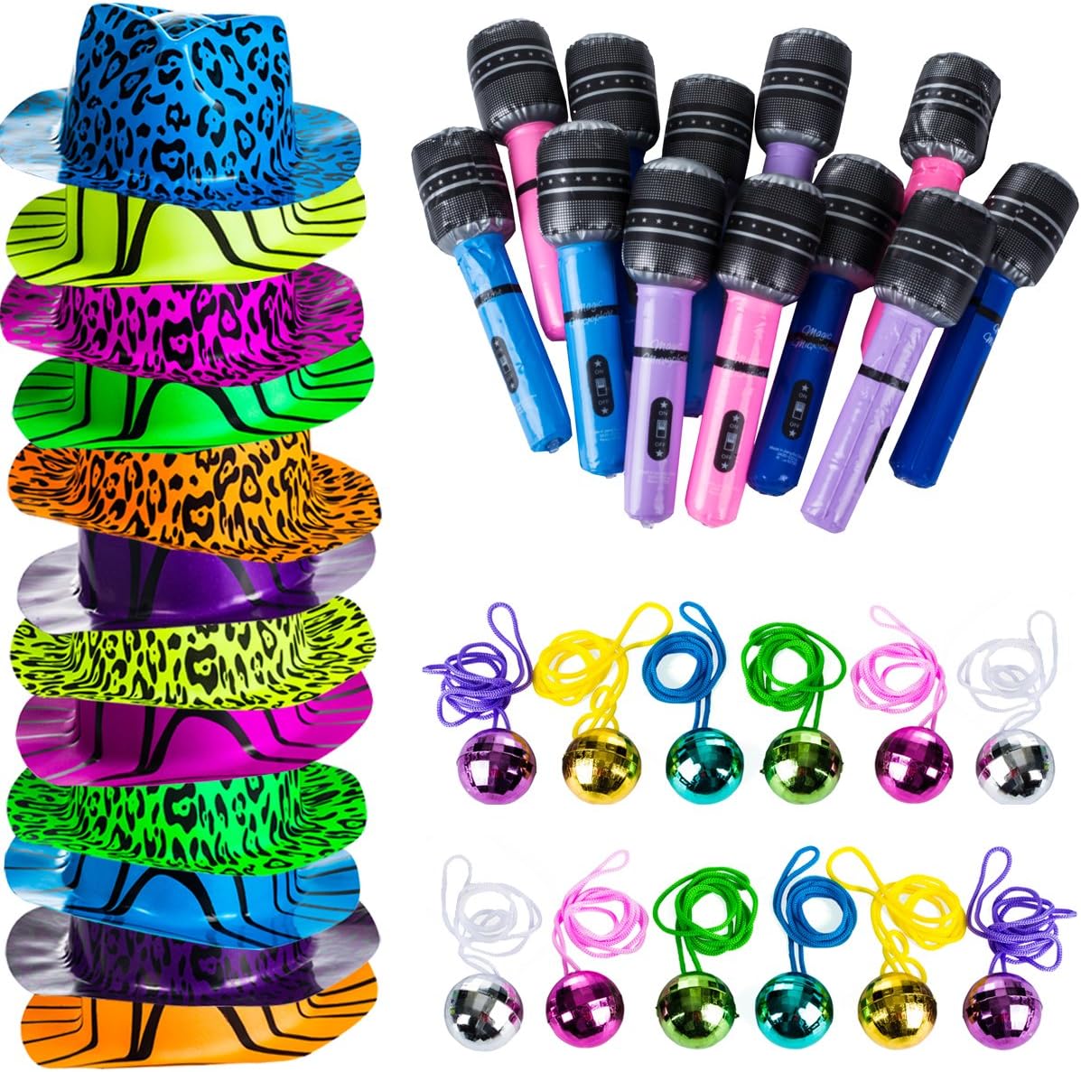 The set also includes 12 assorted colorful disco ball necklaces, ensuring you’ll shine brighter than any stage light. These disco balls are the perfect accessory to complete your party outfit and make you the center of attention.